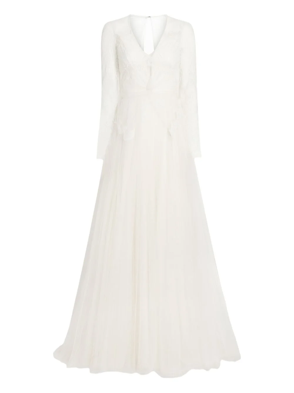 lace long-sleeve bridal dress Highlights - White - Lace overlay - Long sleeves - V-neck - Concealed rear zip fastening Imported Composition Polyester 100% Washing instructions Dry Clean Only
