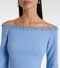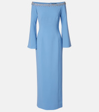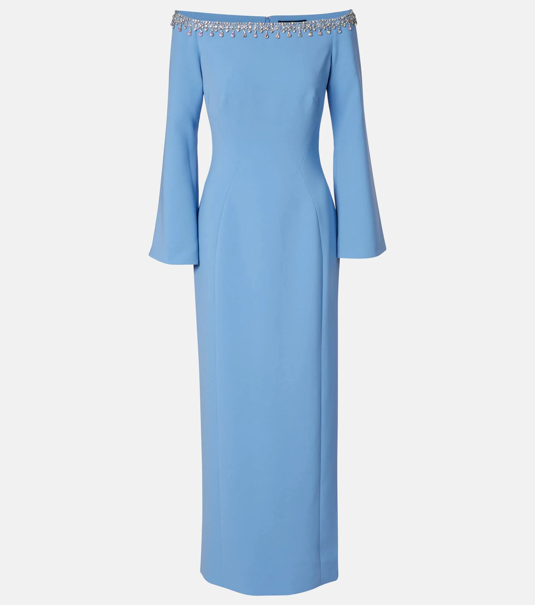 Exude elegance in the Lima maxi dress by Jenny Packham, featuring intricate beadwork and crystal embellishments that draws attention to the neckline. Long sleeves and a zipped back closure complete this sophisticated silhouette. Product Details - Material: 92% polyester, 8% polyurethane - Care instructions: specialist clean - Made in China - Designer color name: Blue Hawaiian - Item color: blue - Lining: 95% polyester, 5% elastane - Short vent - Closure: zipped back - Item number: P01055406 Size & Fit - True to size - Off-the-shoulder - Cinched waist - Slightly stretchy fabric - slit length 45,0cm-17.5" - The model seen in the picture is 178cm-5'10" and wearing a size UK 8