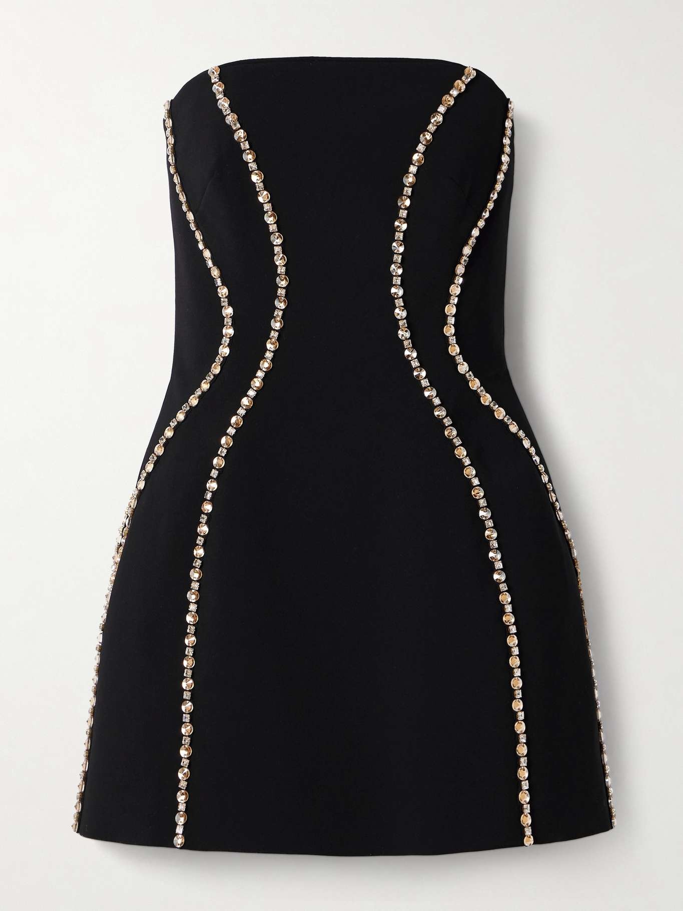 EDITORS'NOTES Jenny Packham's 'Lovebug' dress is traced with strands of sparkling crystals that gently contour your figure. Cut from black crepe, it has a strapless neckline and slim bodice supported by an internal corset. Match your jewelry to the gleaming details. SIZE & FIT - Fits true to size, however those who are between sizes should take the smaller size - Intended to be slightly fitted at the bust and waist, loose at the hip - Internal bodice for support - Mid-weight, heavily embellished, non-stretchy fabric - Model is 180cm/ 5'11" and is wearing a UK 6 DETAILS & CARE - Black crepe - Concealed hook and zip fastening at back - 92% polyester, 8% polyurethane; lining: 100% polyester - Dry clean - Designer color: Liquorice