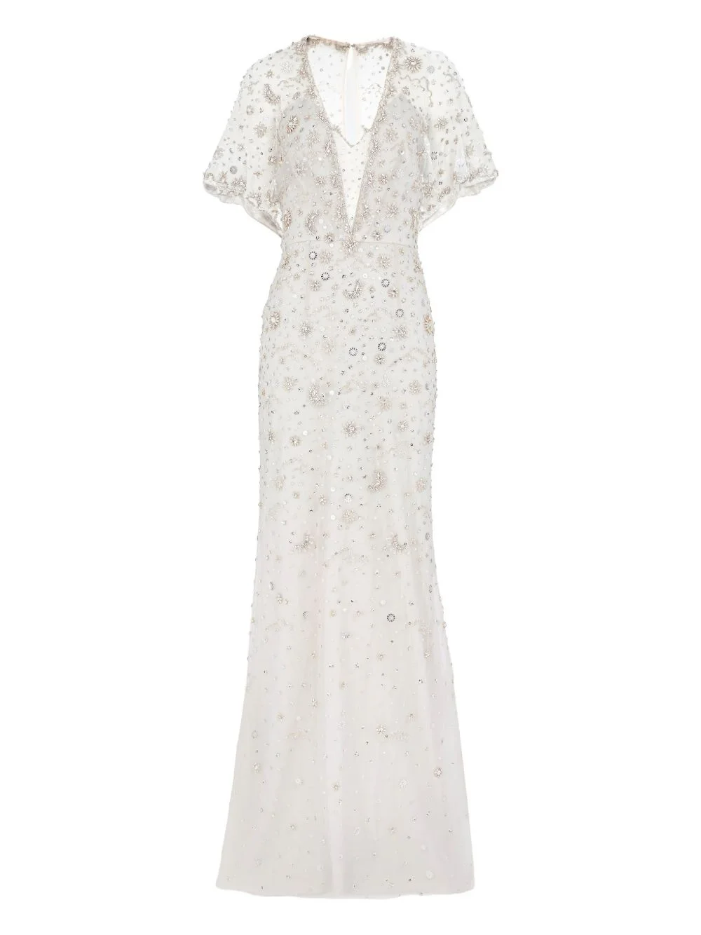 Luna maxi dress Highlights - White - Rear zip fastening - Crystal embellishment - V-neck - Short sleeves Imported Composition Polyester 100%