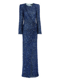 Marie dress Highlights - Blue - Rear zip fastening - Sequin embellishment - Crew neck - Long sleeves Imported Composition Polyester 100% Washing instructions Dry Clean Only