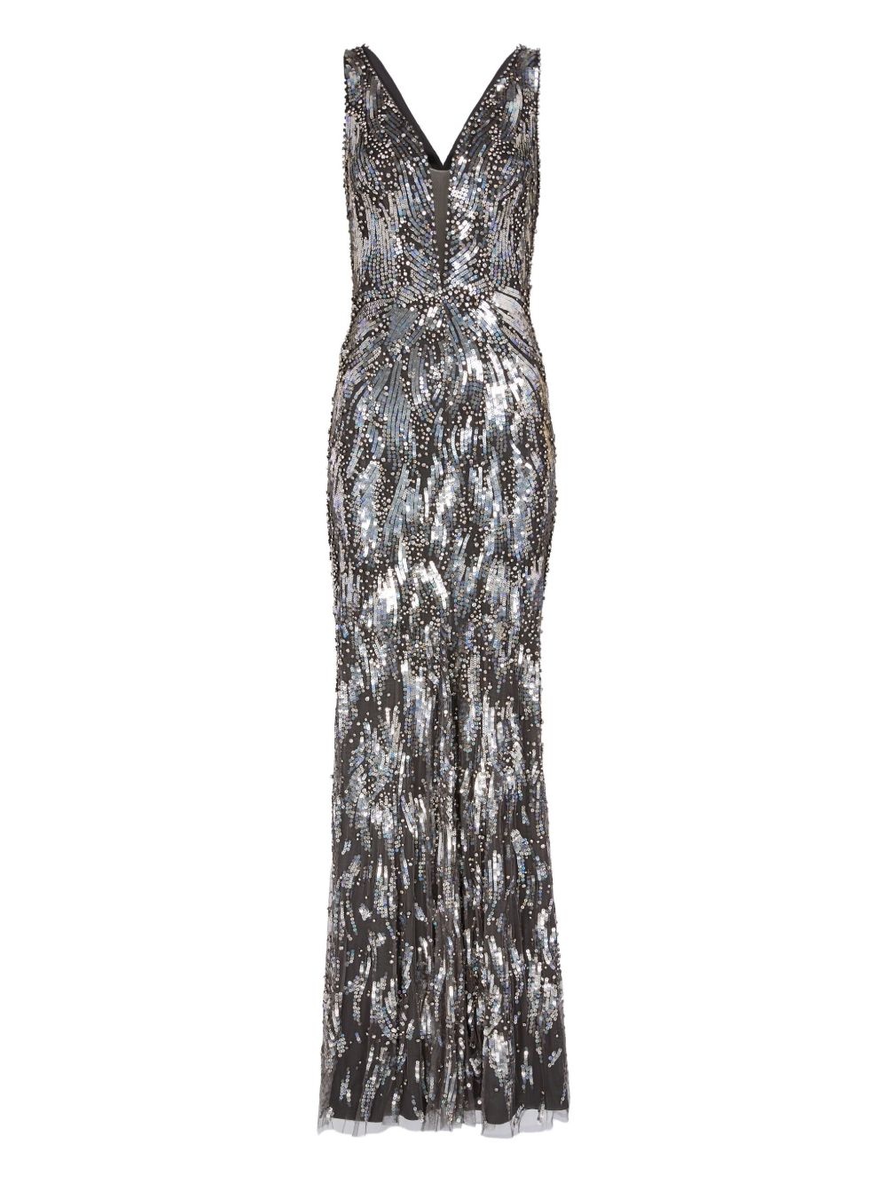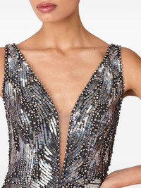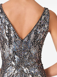 Marion dress Highlights - Grey - Rear zip fastening - V-neck - Sequin embellishment - Sleeveless Imported Composition Nylon 100%
