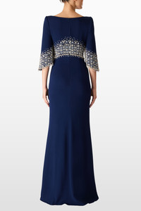 The Electra gown redefines contemporary elegance with bold color and stunning embellishment. This streamlined dress features a sleek silhouette accentuated by intricate crystal designs that cascade artfully across the waistline and bell-shaped sleeves. Every movement catches the light, creating a dynamic, glimmering effect that is both regal and modern. The bateau neckline and three-quarter sleeves elevate the gown’s architectural balance, while the full-length skirt adds an elongating and statuesque finish. Crafted for the modern muse, Electra is ideal for red carpet events, black-tie galas, winter weddings, or evening soirees that call for unforgettable impact. This embellished gown combines luxury detailing with sleek minimalism, making it a must-have for anyone searching for an elegant formal gown with refined sparkle and bold color.