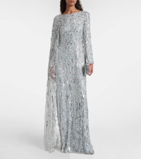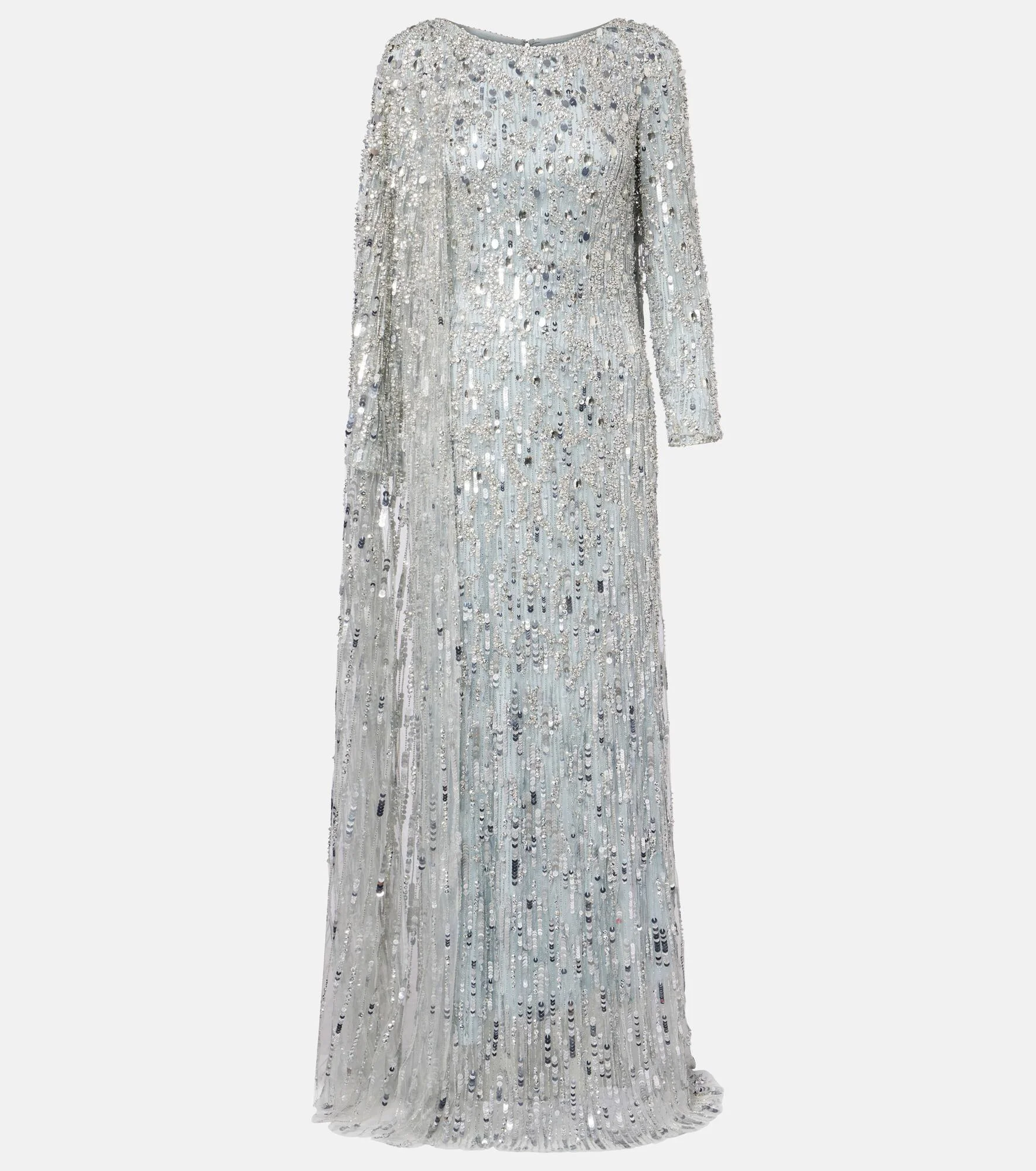 Enriched with romance, Jenny Packham’s intricately embellished pieces are made to make an entrance. The Pauline gown features a caped design that gracefully cascades along the silhouette, finished with long sleeves and a classic boat neckline. Product Details - Material: 100% nylon - Care instructions: dry clean - Made in India - Designer color name: Porcelain - Item color: silver - Lining: 100% polyester - Closure: concealed zipper, zipped back, hook-fastening back - Item number: P01048220 Size & Fit - True to size - Straight fit - Loose outer layer - Non-stretchy fabric - The model seen in the picture is 178cm-5'10" and wearing a size UK 8