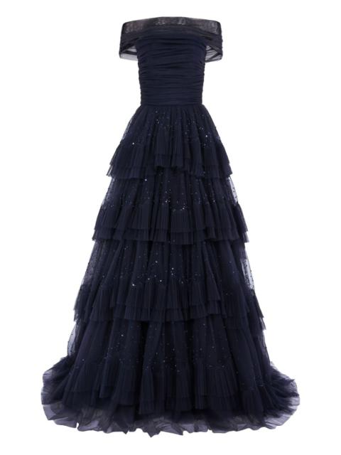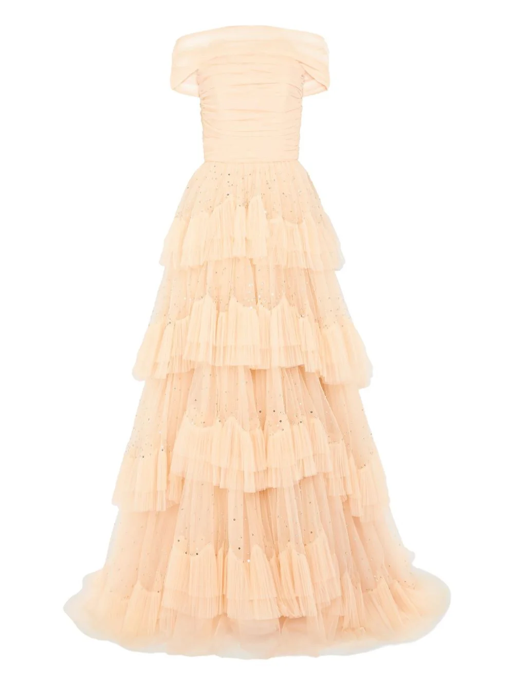 Queenie maxi dress Highlights - Light beige - Concealed rear zip fastening - Off-shoulder - Sequin detailing - Tiered skirt Imported Composition Polyester 100% Washing instructions Dry Clean Only