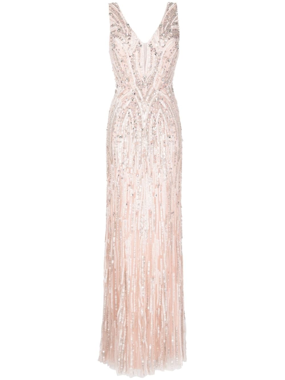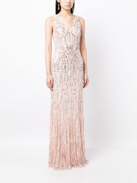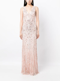 Raquel crystal-embellished gown Jenny Packham is renowned for intricate garments with sparkling touches, as seen with the Tuva gown. Rendered in light pink, it's embellished with crystals and sequins, cascading to a sleek silhouette. Highlights - Light pink - Crystal embellishment - Sequin detailing - V-neck - Sleeveless - Long length Imported Composition Lining: Polyester 100% Body: Polyester 100% SIZE & FIT Model measurements Height 5 ft 10 in(1.77 m) Bust/Chest 28.74 in(73 cm) Hips 35.82 in(91 cm) Waist 24.4 in(62 cm) FittingInformation Designed for a close fit throughout The moulded cups offer shape and support Made from a heavyweight non-stretch fabric