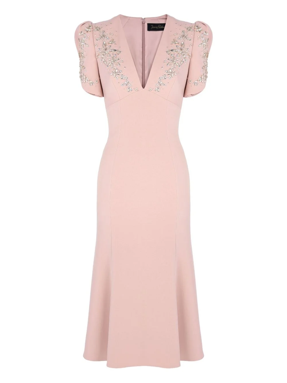 Rose Bud dress Highlights - Powder pink - Concealed rear zip fastening - V-neck - Short sleeves - Mid-length Imported Composition Sequin 100%, Polyester 92%, Polyethylene 8%