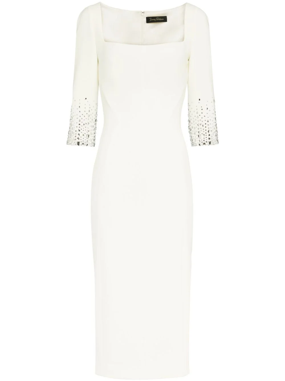 Rosebud midi dress Highlights - White - Concealed rear zip fastening - Crystal embellishment - Square neck - Half-length sleeves Imported Composition Polyester 92%, Polyurethane 8% Washing instructions Dry Clean Only