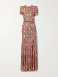 EDITORS'NOTES Jenny Packham's eveningwear is favored by some of the most glamorous women around the world, including The Duchess of Cambridge. This tulle 'Roxy' gown is embellished with beads and sequins of varying sizes, creating a dimensional sparkle. It has a figure-hugging fit and is fully lined in satin for a smooth, comfortable fit. SIZE & FIT Model measurements: - Fits true to size, take your normal size - Those with a curvy figure may wish to take the next size up - Intended for a close fit - Mid-weight, heavily embellished, stretchy fabric - Model is 175cm/ 5'9" and is wearing a UK 8 - Bust: 75cm/ 29.5" - Waist: 60cm/ 23.5" - Hip: 93cm/ 36.5" DETAILS & CARE - Antique-rose tulle - Concealed hook and zip fastening at back - 100% nylon; lining: 95% nylon, 5% elastane - Fully lined - Specialist clean