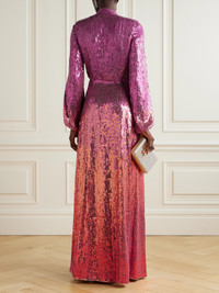 EXCLUSIVE AT NET-A-PORTER. Jenny Packham's eye-catching gowns are made for special occasions. This 'Orb' style is cut from jersey and covered in a gradient of sparkling sequins. It has a plunging neckline and a floor-sweeping hem.