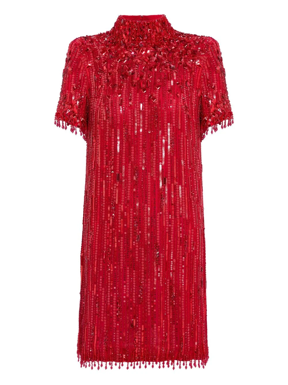 Snapdragon sequin-embellished mini dress Highlights - Red - Mock neck - Short sleeves - Fringed sequin-embellishment - This piece features very delicate detailing. handle with extreme care to avoid damage such as broken feathers or loss of sequins. Imported Composition Viscose Crepe 100% Washing instructions Dry Clean Only