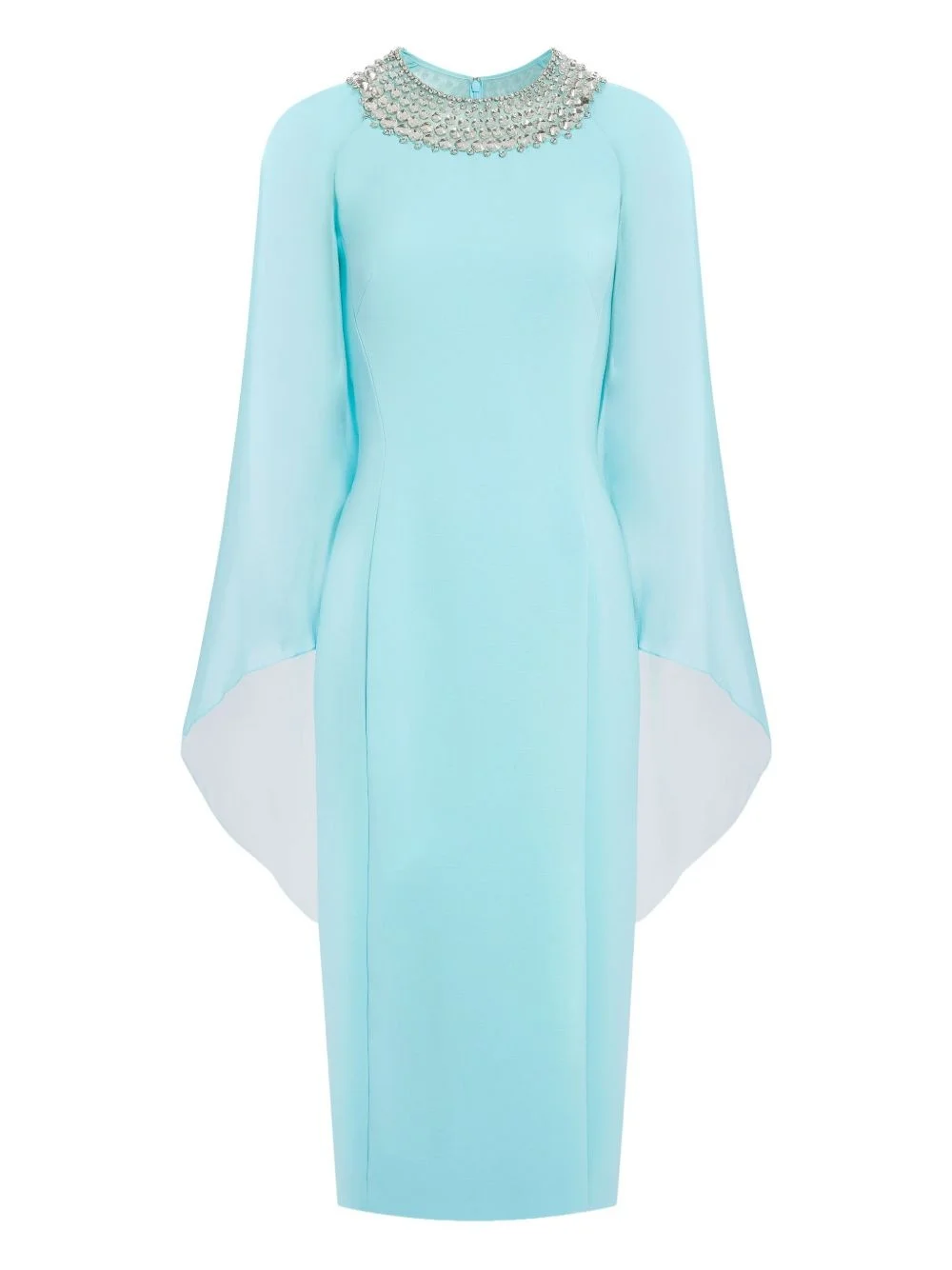 Sunbeam beaded midi dress Highlights - Light blue - Beaded embellishment - Crew neck - Flowing cape sleeves - Back vent Imported Composition Polyester 92%, Polyethylene 8%