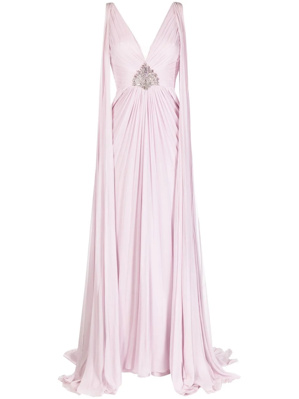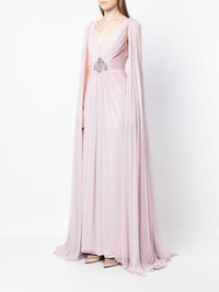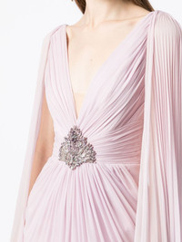 Sylvia floor-length gown Famed for their striking gathered silhouettes, Jenny Packham presents another in this Sylvia cape-style gown. Centred around the lavish crystal embellishment at the waist, the whimsical pleated sleeves add to the dramatic presence of the piece. Imported Composition Polyester 100% SIZE & FIT Model measurements Height 5 ft 11 in(1.8 m) Bust/Chest 28.34 in(72 cm) Hips 35.43 in(90 cm) Waist 23.62 in(60 cm) Washing instructions Dry Clean Only