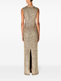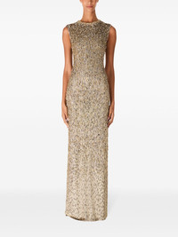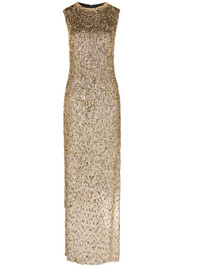 Tabitha gown dress Highlights - Gold-tone - Chiffon - Concealed rear zip fastening - Crew neck - Bead detailing - Sleeveless - Rear slit - Long length - Satin lining Imported Composition Polyester 100%