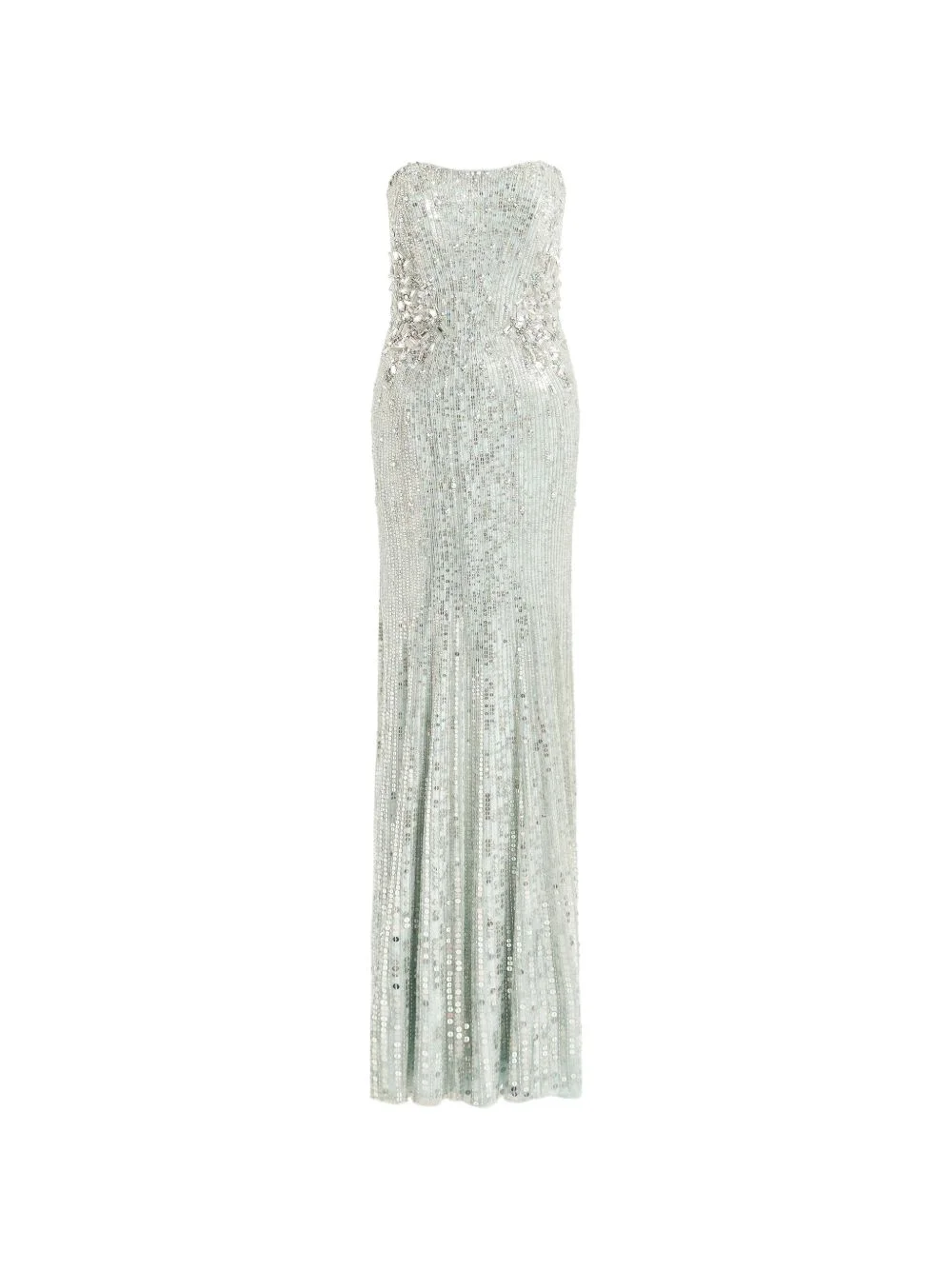 Topaz sequin-embellished maxi dress Highlights - Silver-tone - Sequin embellishment - Embellishments - Strapless - Floor length - Rear zip fastening Imported Composition Nylon 100% Washing instructions Dry Clean Only
