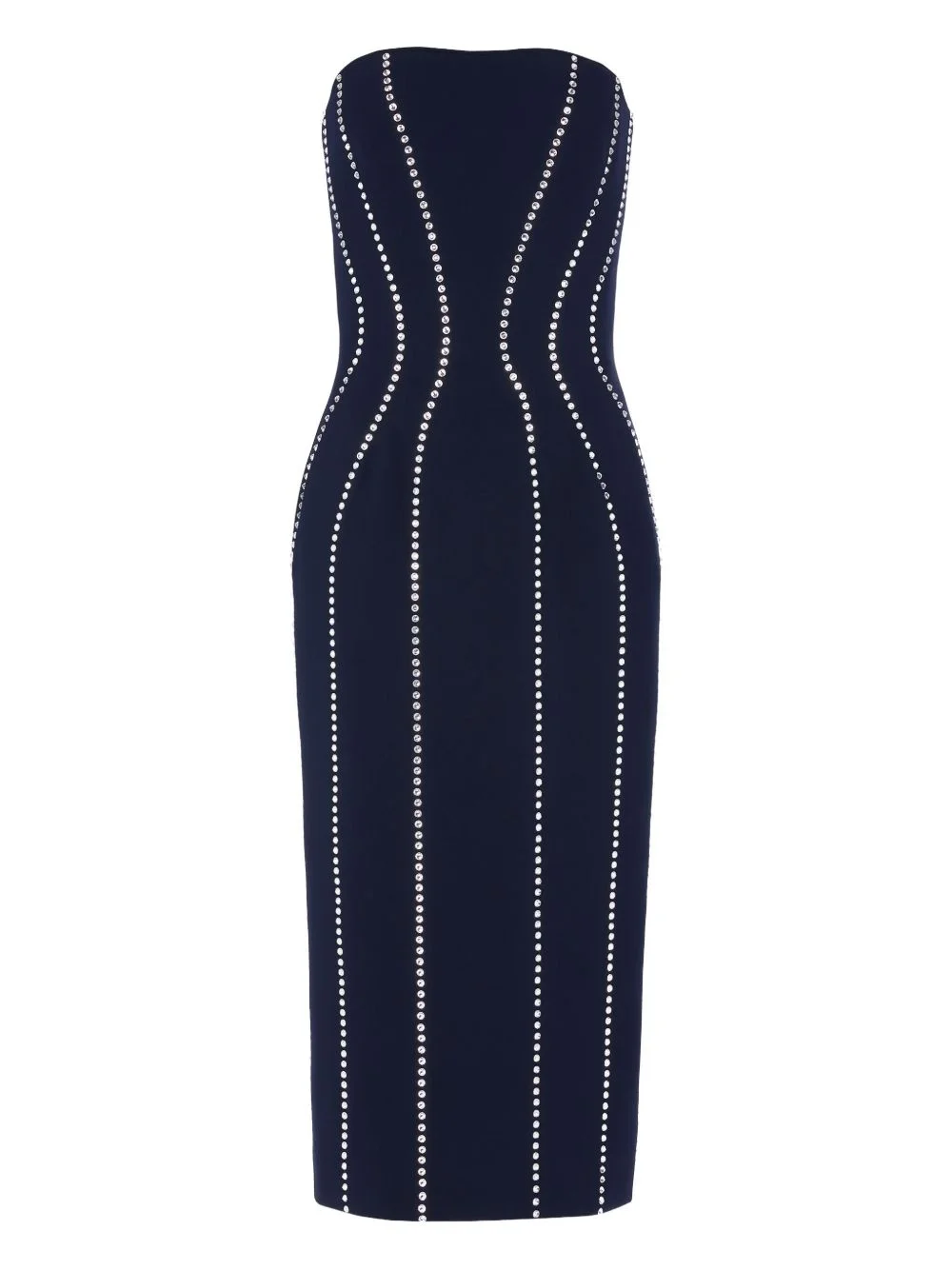 Verity dress Highlights - Midnight blue - Concealed rear zip fastening - Strapless - Mid-length - Rhinestone embellishment Imported Composition Polyester 92%, Polyethylene 8%