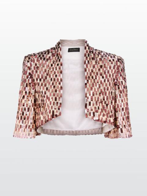 Crafted to be the ultimate finishing touch, the Versailles evening jacket elevates any formal outfit with exquisite craftsmanship and a timeless sensibility. This cropped design features intricate embellishments arranged in a cascading, leaf-like pattern that begins at the shoulders and trails delicately down the bodice. The open-front silhouette and clean neckline maintain a contemporary edge, while the three-quarter sleeves lend a touch of balance and elegance. Designed to be layered over formal gowns or sleeveless cocktail dresses, Versailles adds refined structure and textural contrast without overwhelming the ensemble. Ideal for cool-weather soirees, winter weddings, or sophisticated receptions where style and warmth are equally important. Whether styled with tonal pieces or layered for a monochrome statement, this piece offers both versatility and couture flair. A must-have for anyone curating a luxurious eveningwear wardrobe.