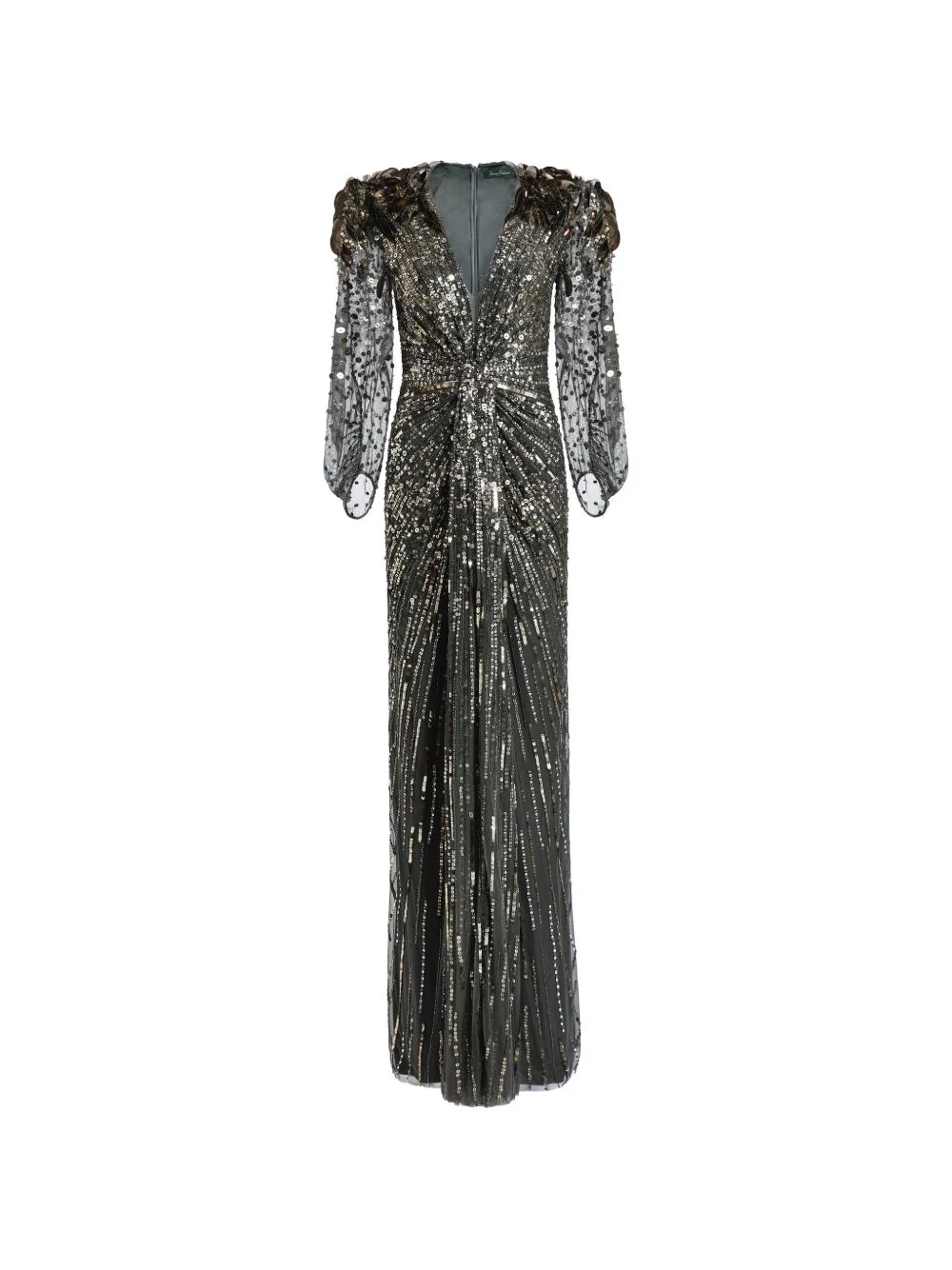 Xenia sequin-embellished maxi dress Highlights - Black - Sequin embellishment - Long sleeves - V-neck - Draped detail - Floor-length Imported Composition Nylon 100% Washing instructions Dry Clean Only