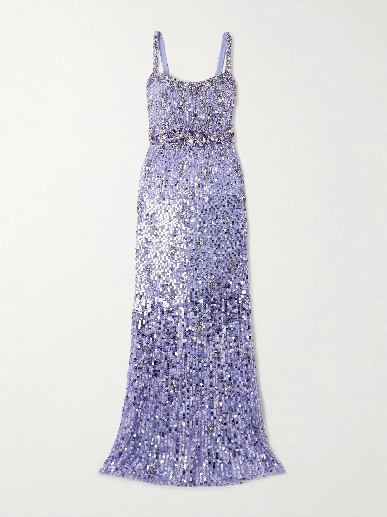 EXCLUSIVE AT NET-A-PORTER. Jenny Packham's 'Zodiac' gown is drenched in scores of crystals and sequins, ensuring a dazzling entrance at your next event. Made from tulle, it has a square neckline framed by slim straps and fits close through the bodice before gently flaring out at the floor-skimming hem.