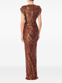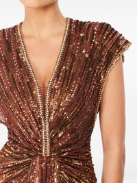 Zola sequin-embellished V-neck maxi dress Highlights - Bronze metallic - Sequin embellishment - Short sleeves - Draped bodice - Floor-length skirt Imported Composition Nylon 100% Washing instructions Dry Clean Only