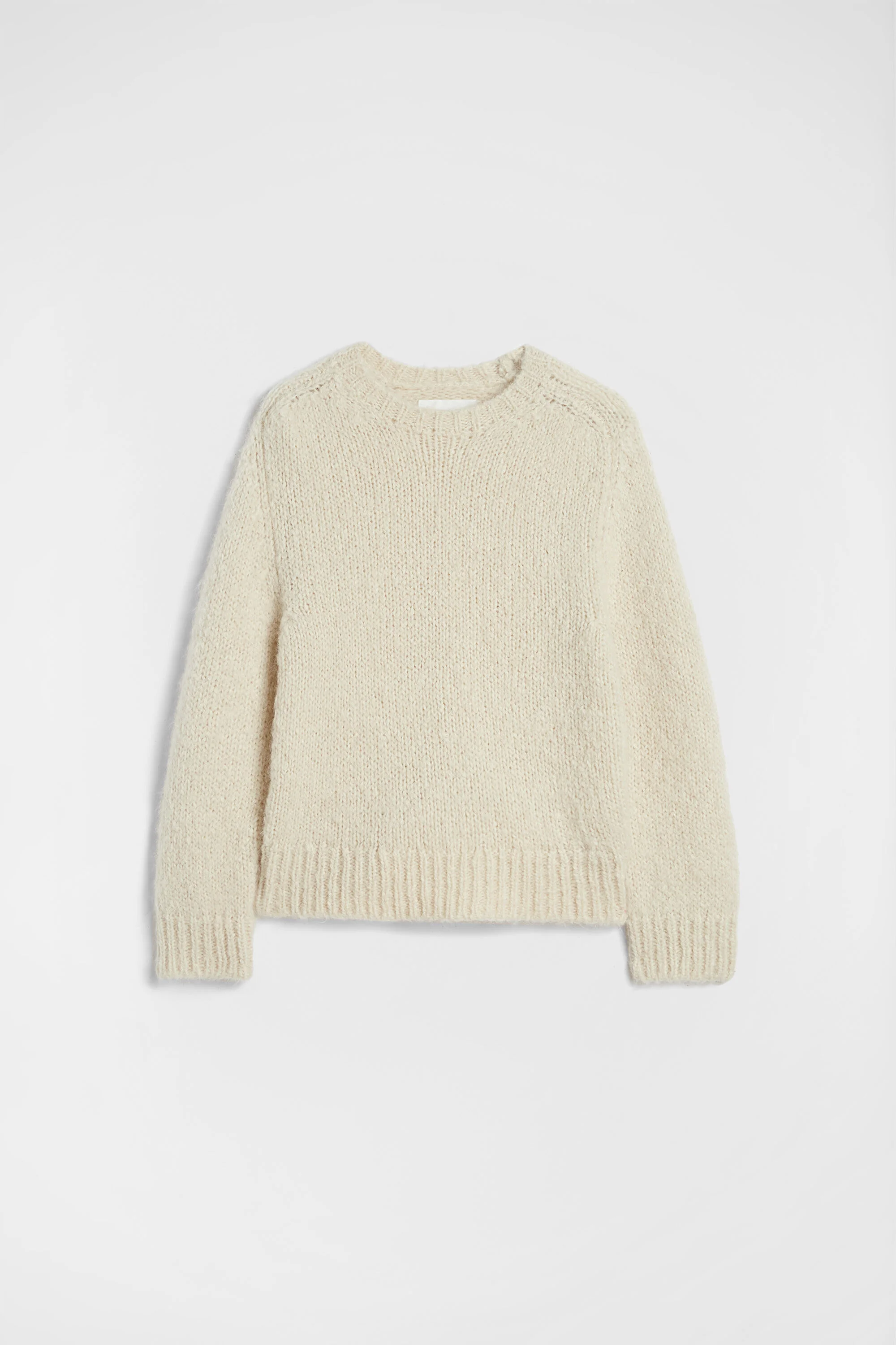 Long-sleeved mohair and alpaca blend sweater Details - regular fit - dropped shoulders - ribbed neck, hem and cuffs - chunky-knitted mohair and alpaca blend - 43% mohair 43% alpaca 14% polyamide-nylon - made in Italy - StyleID: J40GP0170J14733105 Care - dry clean only - iron with care Fit - model is 177cm/5'9" and is wearing a size 34 DE - Please note that the physical label of the item will show the German size