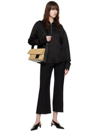 Woven raffia shoulder bag in beige. · Buffed calfskin throughout · Adjustable shoulder strap · Logo patch at face · Magnetic flap · Logo embossed at interior · H8" x W12.5" x D5" Supplier color: Natural Body: 100% raffia palm. Trim: 100% calfskin. Made in Italy 241249F048042