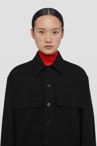 Long-sleeved felt wool flannel overshirt with front patch pockets Details - relaxed fit and dropped shoulders - flat pointed collar - centre-front button closure - patch pockets with flaps on chest - side slits - Jil Sander+ logo printed on back label - viscose lining - felted wool flannel - 100% virgin wool - made in Italy - StyleID: J40DL0124J40182001 Care - dry clean only - iron with care Fit - model is 177cm/5'9" and is wearing a size 34 DE - Please note that the physical label of the item will show the German size