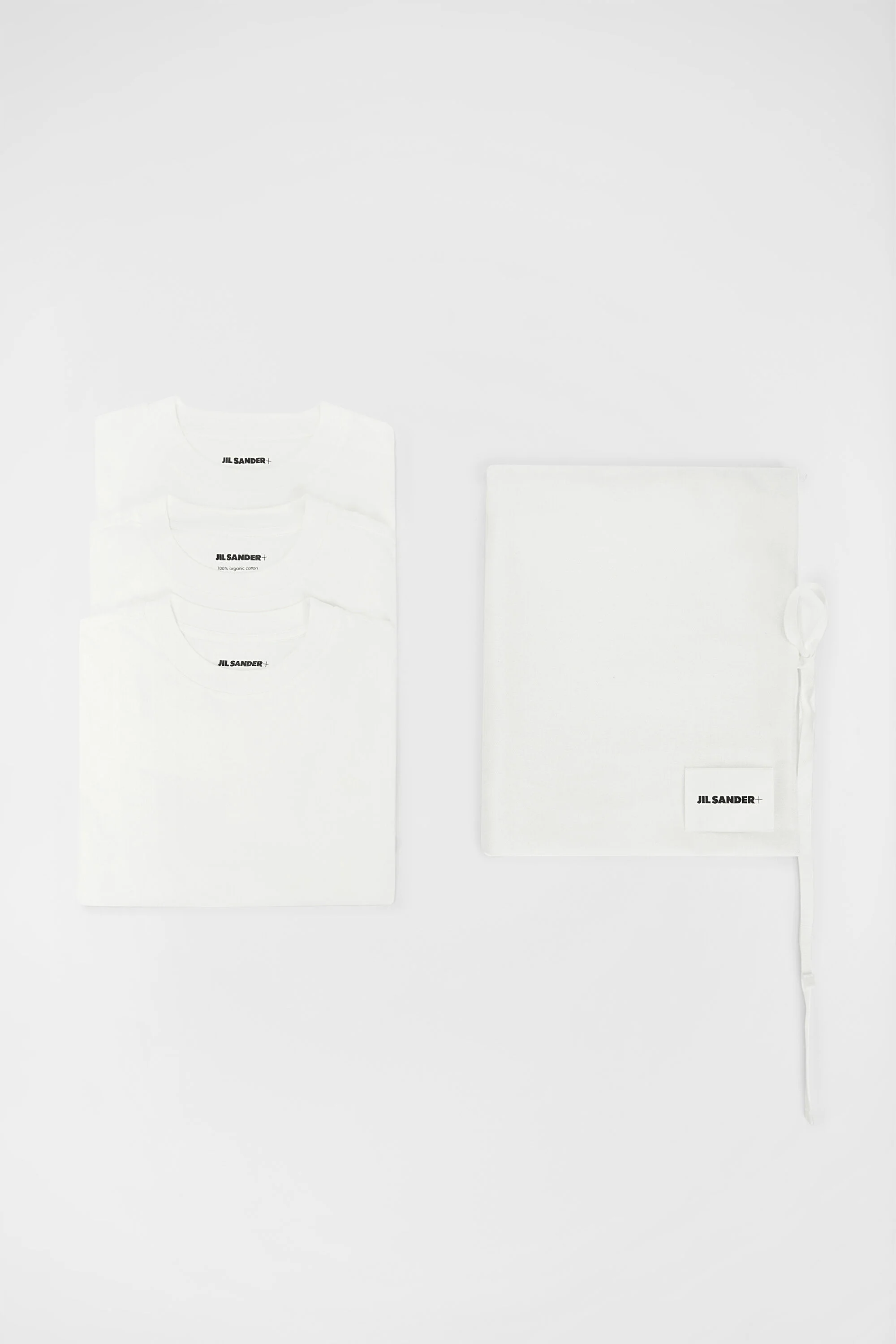 Three-pack organic cotton t-shirt set with Jil Sander+ logo label stitched at bottom Details - pack of three t-shirts - relaxed fit and boxy shape - short sleeves and crew neck - Jil Sander+ logo label stitched at bottom - organic cotton - 100% cotton - StyleID: J40GC0001J45048100 Care - hand wash - iron with care Fit - model is 177cm/5'9" and is wearing a size S - Please note that the physical label of the item will show the international size