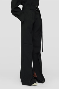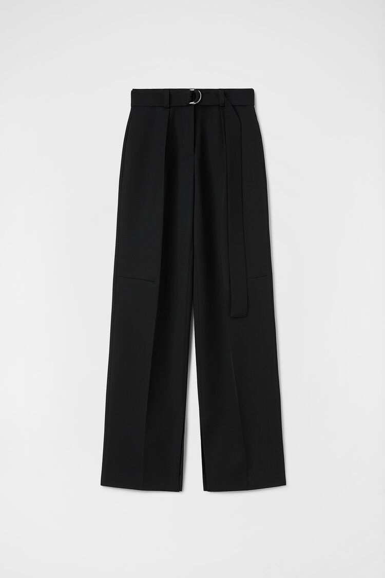 Wool gabardine belted trousers Details - relaxed fit and wide leg - low waist and slightly dropped crotch - adjustable d-ring belt - side-seam pockets - two welt pockets at back - full-leg crease - side slits at hems - sharp wool gabardine - 100% wool - made in Italy - StyleID: J52KA0013J40002001 Care - dry clean only - iron with care Details - model is 177cm/5'9" and is wearing a size 34 DE