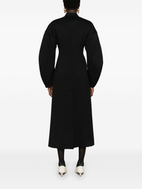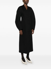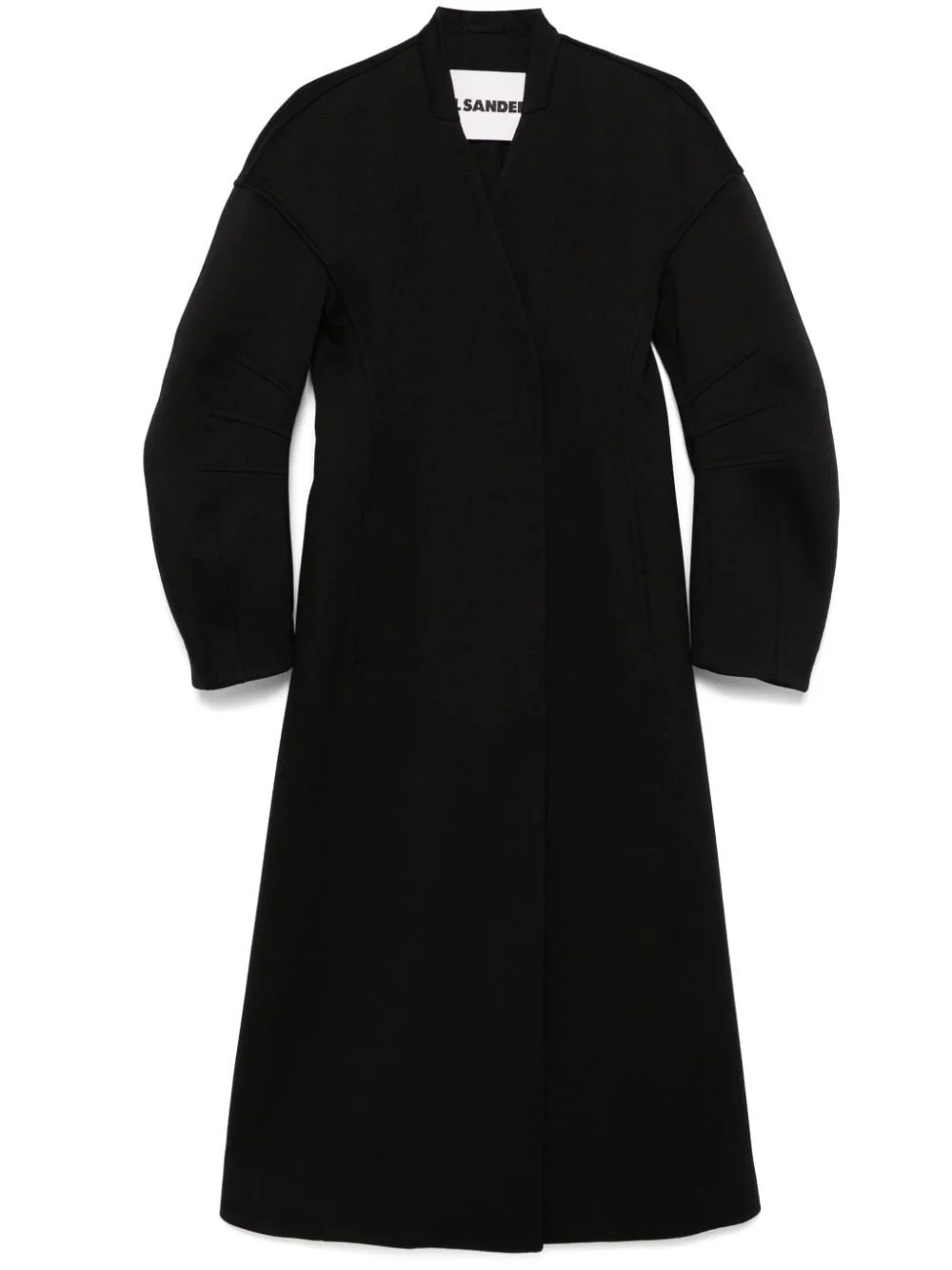 V-neck coat Highlights - Black - Virgin wool blend - Interlock weave - V-neck - Front press-stud fastening - Front tie fastening - Collarless - Long sleeves - Two side welt pockets - Central rear vent - Full lining - Straight hem Made in Italy Composition Outer: Virgin Wool 98%, Polyamide 2% Lining: Viscose 100% SIZE & FIT Model measurements Height 5 ft 11 in(1.8 m) Bust/Chest 32.67 in(83 cm) Hips 36.22 in(92 cm) Waist 24.4 in(62 cm) FittingInformation Designed for a slim fit that sits just away from the body offering a close yet comfortable fit Made from a midweight non-stretch fabric