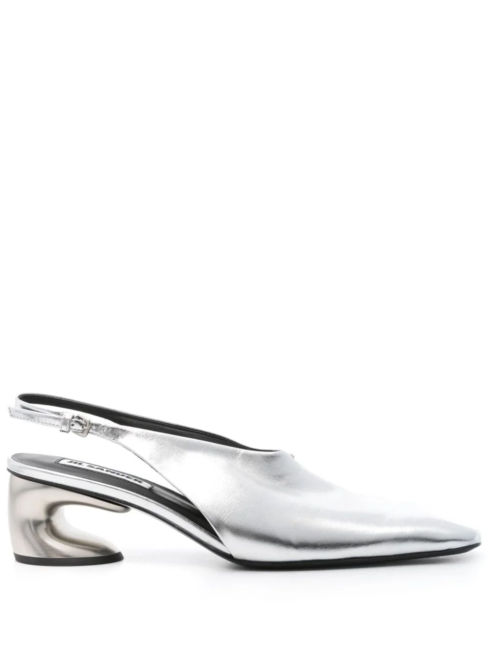 60mm leather pumps Highlights - Silver-tone - Leather - Square toe - Branded leather insole - 60mm mid sculpted heel - Buckle-fastening slingback strap Made in Italy Composition Outer: Leather 100% Lining: Leather 100% Sole: Leather 100%, Rubber 100% SIZE & FIT Measurement HEEL 2.36 in(6 cm)