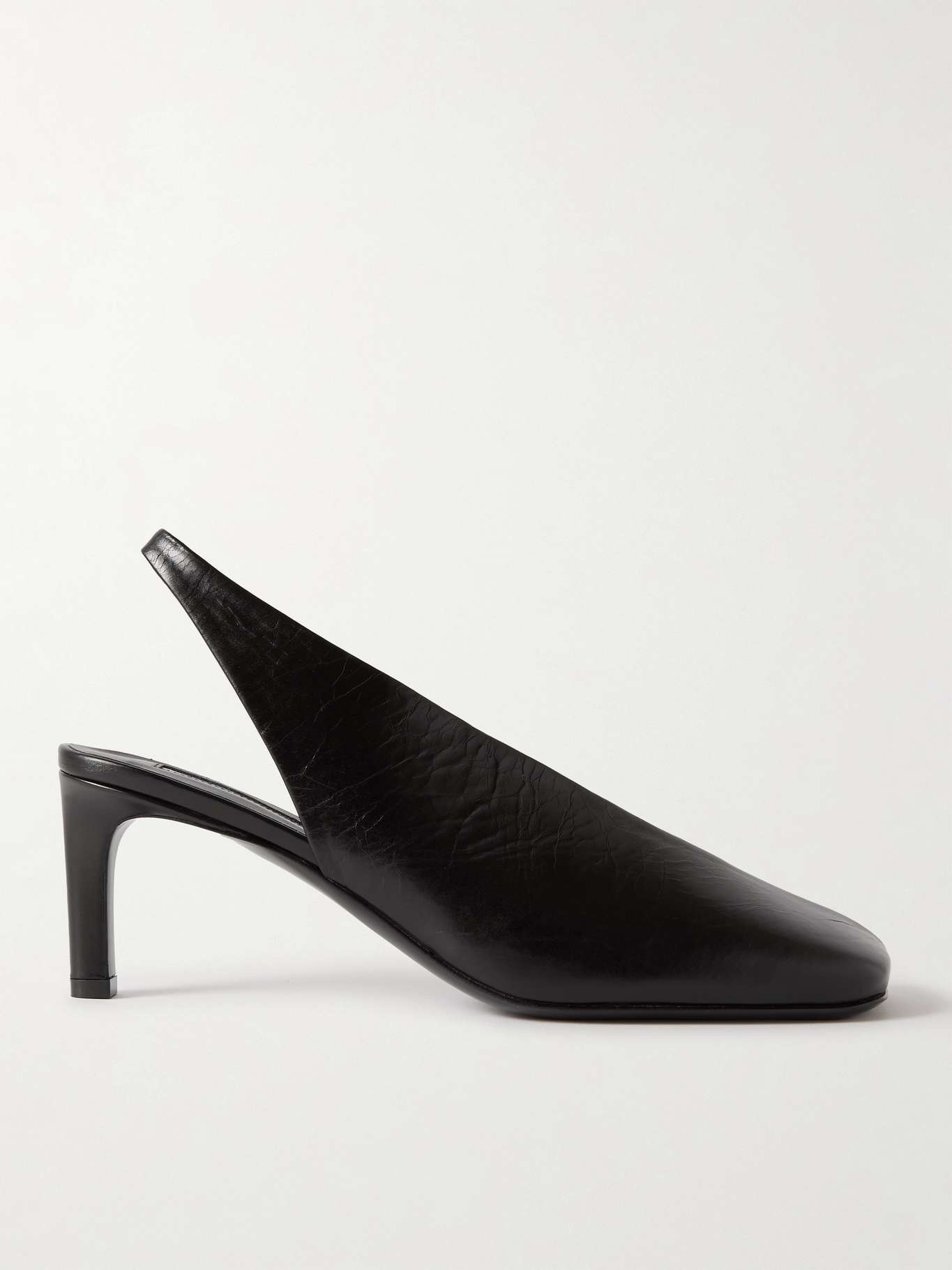 EDITORS'NOTES Jil Sander's pumps are defined by its sleek squared toes. Made from panels of leather that overlap slightly, they have adjustable slingback straps and 65mm heels. SIZE & FIT - Fits true to size, take your normal size - Italian sizing DETAILS & CARE - Heel measures approximately 65mm/ 2.5 inches - Black leather (Goat) - Slingback strap