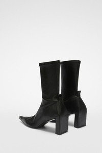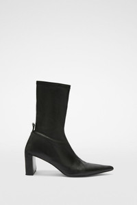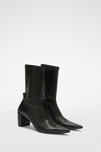 Leather block-heeled ankle boots with pull-tab detail at back Details - pointed toe and block heel - elasticated ankle - leather footbed and sole - Jil Sander logo branded insole - upper: 100% ovine leather, lining: 100% ovine leather, inside: 100% ovine leather, sole: 100% calf leather - StyleID: J15WU0046P5810001