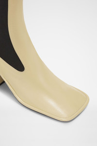 Leather block-heeled chelsea boots Details - square toe and ankle high - elastic inserts - leather footbed and sole - block heel - Jil Sander logo branded insole - upper 100% calf leather, sole 100% rubber - made in Italy - style ID: J15WU0009-P4835