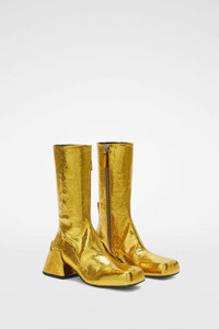 Leather ankle boots with block heel Details - square toe - leather insole and outsole - block heel - Jil Sander logo branded insole - crackled lamé - upper 100% calf leather, lining 100% ovine leather, inside 100% ovine leather, sole 100% calf leather - made in Italy - StyleID: J16WU0023P6241710