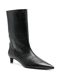40mm leather boots Highlights - Black - Slip-on style - Pointed toe - Kitten heel - Branded leather insole Made in Italy Composition Outer: Calf Leather 100% Sole: Calf Leather 100% Lining: Calf Leather 100% SIZE & FIT Measurement HEEL 1.57 in(4 cm)