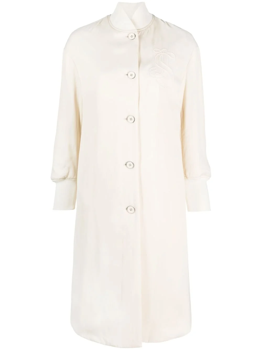 applique logo bomber jacket This longline bomber jacket from Jil Sander is made recognisable by the oversized applique to the chest of this relaxed design. Highlights - Ivory white - Applique logo - Ribbed band collar - Button fastening - Two front welt pockets - Long sleeves - Ribbed cuffs and hem Made in Italy Composition Outer: Viscose 100% Lining: Viscose 95%, Silk 60%, Polyester 40%, Spandex/Elastane 5% SIZE & FIT Model measurements Height 5 ft 10 in(1.78 m) Bust/Chest 30.7 in(78 cm) Hips 34.64 in(88 cm) Waist 23.22 in(59 cm) FittingInformation Designed with a loose outer layer, this piece is constructed with an inner layer that offers adaptability Made from a midweight stretch fabric, this piece offers elasticity and flexibility when worn This piece fits true to size – take your usual size Washing instructions Dry Clean Only