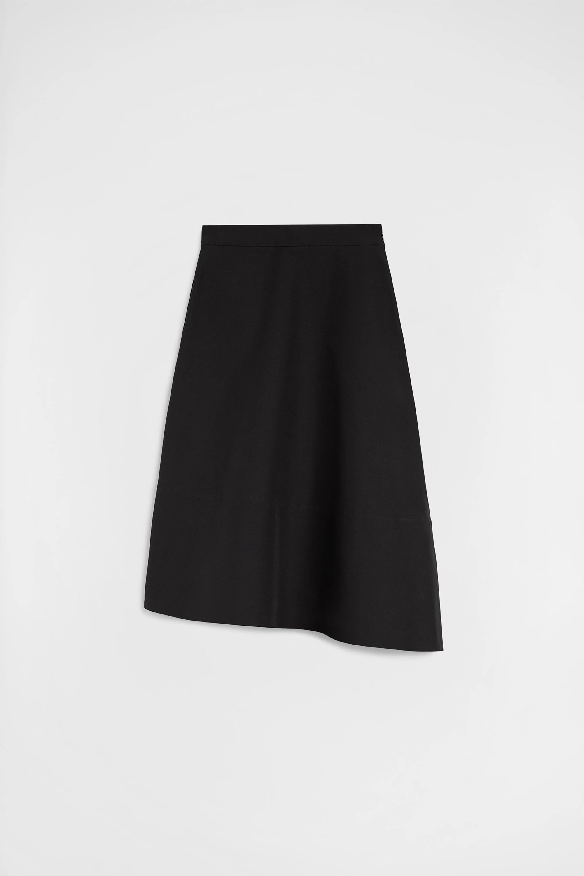 Mid-length asymmetrical compact lighweight double cotton skirt Details - relaxed fit and asymmetrical shape - side-seam zip opening - 100% cotton - made in Italy - StyleID: J04MA0005J45225001 Care - dry clean only - iron with care Fit - model is 179cm/5'10" and is wearing a size 34 DE - Please note that the physical label of the item will show the German size