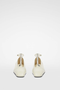 Flat leather ballerinas with crystal bar Details - squared toe - leather ankle straps with buckle - leather t-strap with crtystal bar - leather footbed and sole - nappa lining - Jil Sander logo branded insole - 100% goat leather, sole 100% calf leather - made in Italy - StyleID: J15WZ0021P4864105