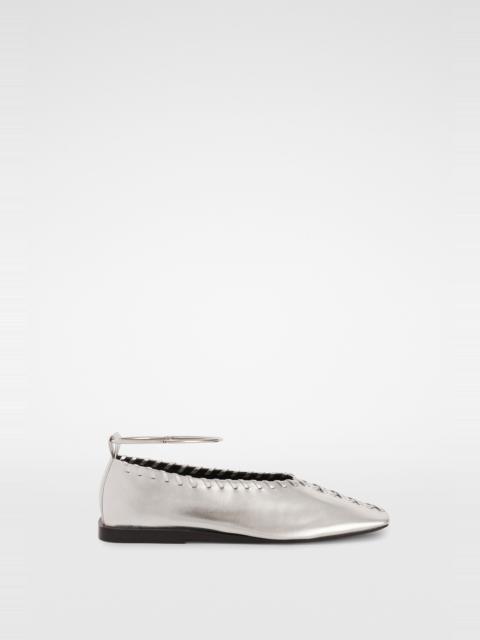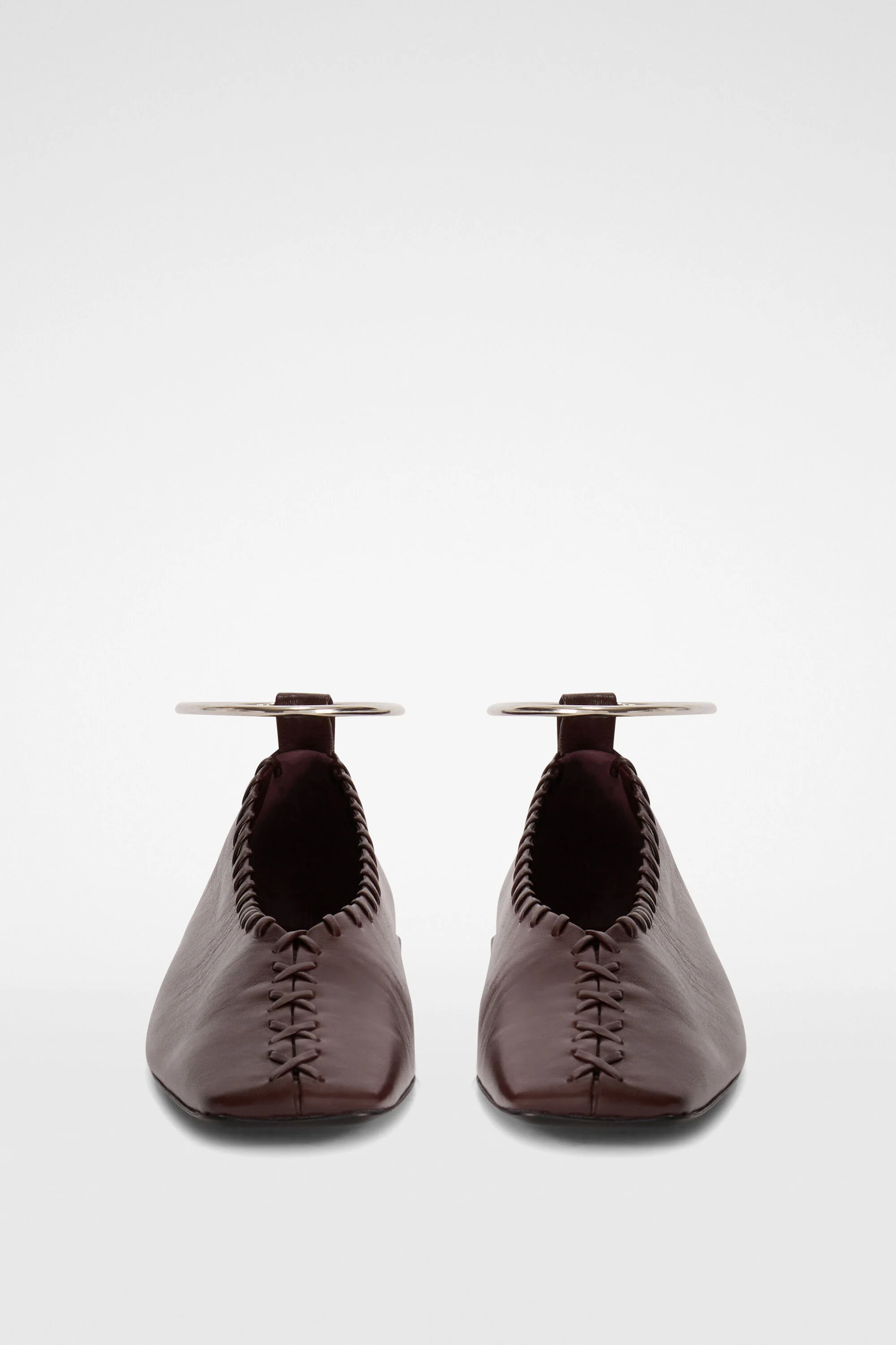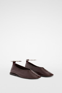 Leather ballerina with stitching details and detachable metal ankle bracelet Details - square toe - stitching detail - detachable metal ankle bracelet - nappa leather insole and lining - calf leather sole with rubber injection - Jil Sander logo branded insole - 100% ovine leather - made in Italy - StyleID: J15WZ0009P4835209