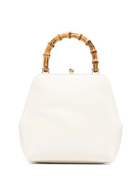 Goji bamboo-handle tote bag Goji bamboo-handle tote bag from JIL SANDER featuring calf leather, bamboo, signature bamboo top handle, gold-tone logo lettering, gold-tone hardware, top clasp fastening, main compartment, internal logo stamp, internal zip-fastening pocket and cosmic latte white. Made in Italy Composition Outer: Calf Leather 100%, Bamboo 100% SIZE & FIT Model measurements Height 5 ft 10 in(1.78 m) Bust/Chest 31.49 in(80 cm) Hips 37 in(94 cm) Waist 23.62 in(60 cm) Measurement DEPTH 3.54 in(9 cm) HANDLE 3.14 in(8 cm) HEIGHT 7.87 in(20 cm) WIDTH 7.87 in(20 cm)