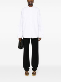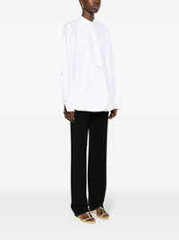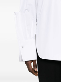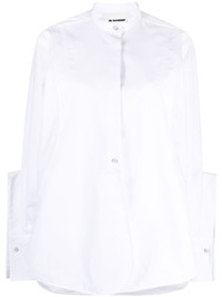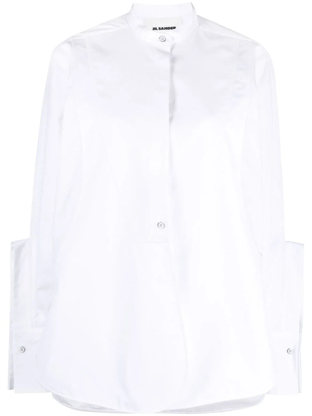 band-collar panelled cotton shirt Highlights - Optical white - Cotton - Poplin texture - Textured finish - Panelled design - Box-pleat detail - Band collar - Short front button fastening - Drop shoulder - Long slit sleeves - Buttoned cuffs - High-low hem - Curved hem Made in Italy Composition Cotton 100% SIZE & FIT Model measurements Height 5 ft 11 in(1.8 m) Bust/Chest 32.67 in(83 cm) Hips 36.22 in(92 cm) Waist 24.4 in(62 cm) FittingInformation Designed for an oversized fit, offering additional room throughout Made from a midweight non-stretch fabric This piece fits true to size – take your usual size