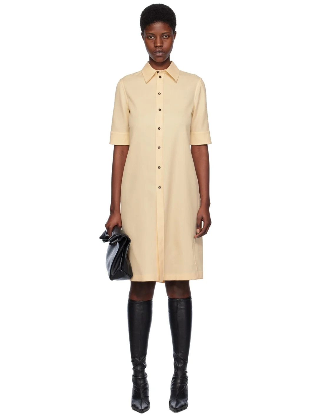 Virgin wool gabardine dress. · Spread collar · Button closure · Single-button barrel cuffs · Partial stretch viscose satin lining Supplier color: Pearl Body: 100% virgin wool. Lining: 95% viscose, 5% elastane. Made in Italy 241249F109003