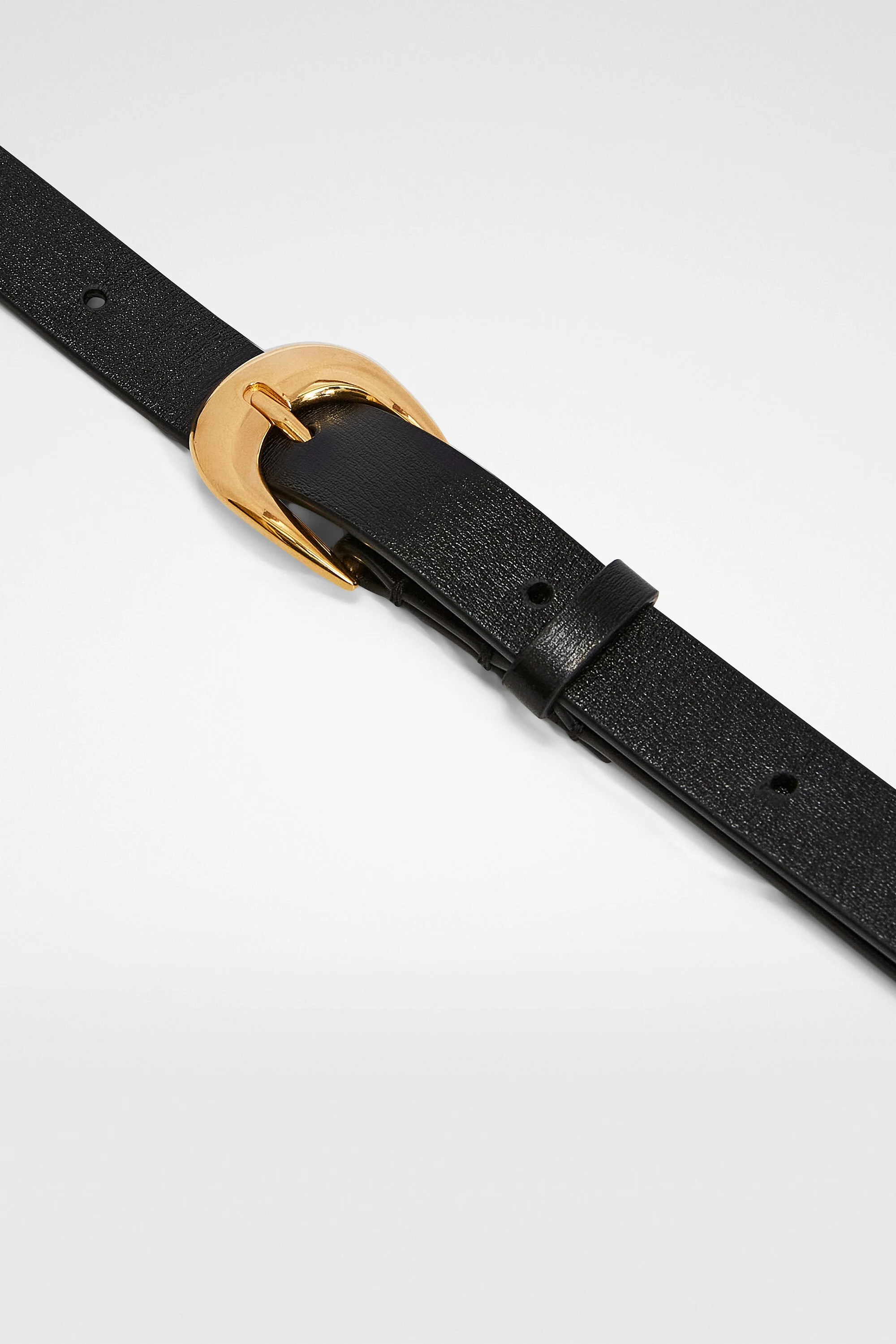 Leather belt with curved buckle Details - gold-toned hardware - width 1.8 cm - 100% calf leather - made in Italy - StyleID: J08TP0015P7368001