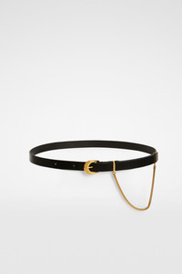 Leather belt with curved buckle and metal chain Details - gold-toned hardware - integrated decorative chain - width 1.8 cm - 100% calf leather - made in Italy - StyleID: J08TP0014P7368001