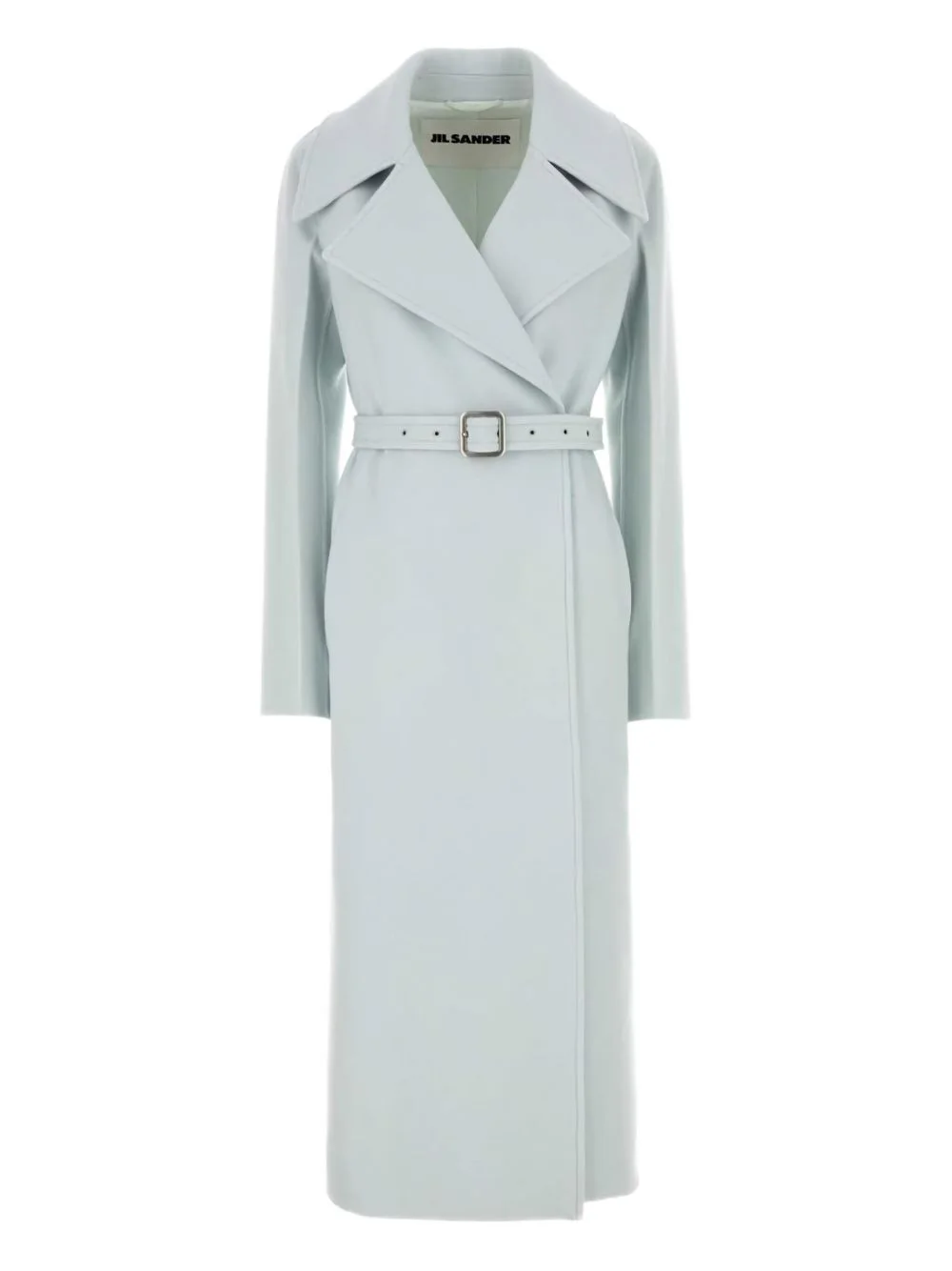 belted cashmere coat Highlights - Ice blue - Cashmere - Notched lapels - Belted waist - Long sleeves - Concealed fastening Made in Italy Composition Outer: Cashmere 100% Lining: Viscose 95%, Spandex/Elastane 5% Washing instructions Read Manufacturer Guidelines