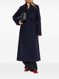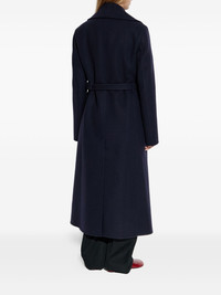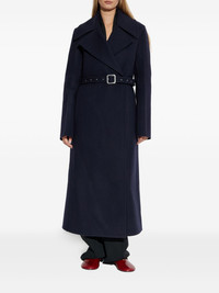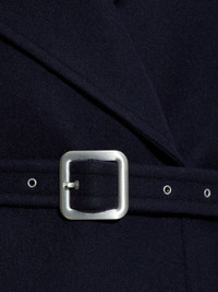 belted coat Highlights - Dark blue - Self-tie belt - Silver-tone buckle - Notched lapels - Long sleeves Made in Italy Composition Wool 100% Washing instructions Read Manufacturer Guidelines