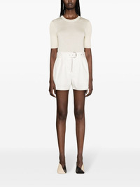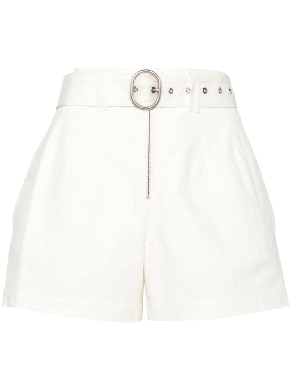 belted denim shorts Highlights - Optical white - Cotton - Denim - Detachable and adjustable waist belt - Logo patch to the rear - High-rise - Two side slit pockets - Two rear flap pockets - Straight hem - Thigh-length Made in Italy Composition Lining: Cotton 100% Outer: Calf Leather 100%, Cotton 100% SIZE & FIT Model measurements Height 5 ft 11 in(1.8 m) Bust/Chest 34.25 in(87 cm) Hips 35.82 in(91 cm) Waist 24.8 in(63 cm) FittingInformation Designed for a relaxed, roomy fit The belt offers adjustability for fitted preferences Sturdy and hard-wearing, this denim piece offers no stretch This piece fits true to size – take your usual size