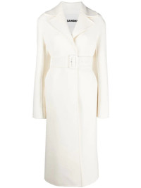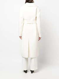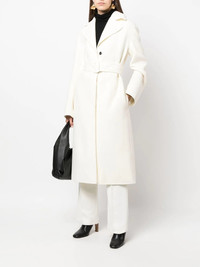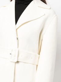 belted single-breasted coat white virgin wool classic lapels button fastening long sleeves mid-length belted waist Made in Italy Composition Lining: Viscose 100% Outer: Virgin Wool 100% SIZE & FIT Model measurements Height 5 ft 11 in(1.8 m) Bust/Chest 31.49 in(80 cm) Hips 36.22 in(92 cm) Waist 25.59 in(65 cm) FittingInformation This piece fits true to size. We recommend you get your regular size Cut for a loose fit. Comes with an adjustable belt for a flexible fit at the waist Made with a mid-weight non-stretch fabric Washing instructions Dry Clean Only