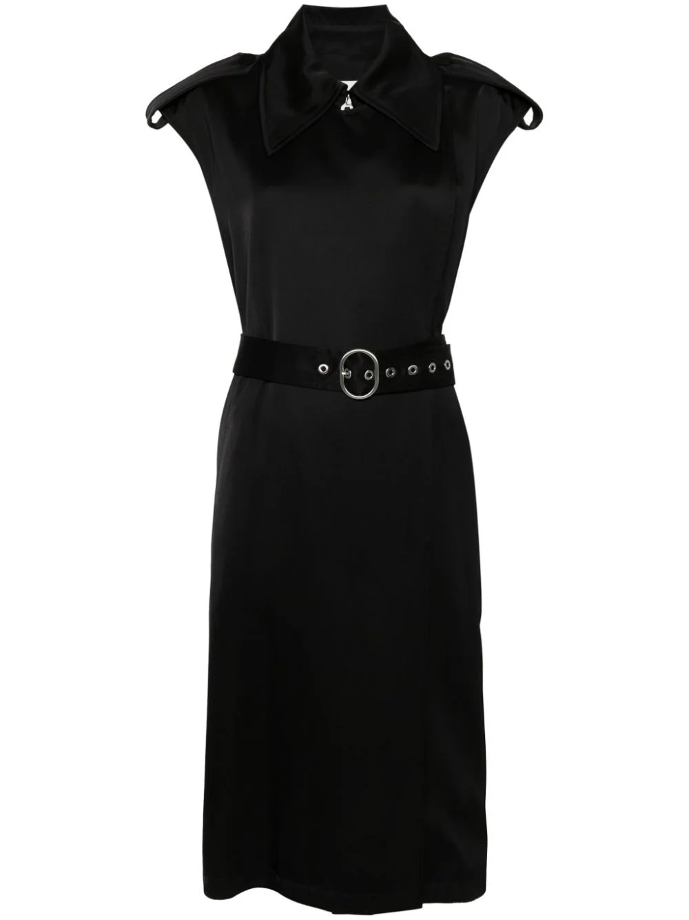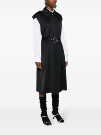 belted trench coat Highlights - Black - Twill weave - Oversized pointed collar - Sleeveless - Two side welt pockets - Storm flap - Detachable waist belt - Full lining - Central rear vent - Front button fastening Made in Italy Composition Lining: Viscose 100% Outer: Viscose 83%, Silk 17% SIZE & FIT Model measurements Height 5 ft 10 in(1.78 m) Bust/Chest 31.49 in(80 cm) Hips 37 in(94 cm) Waist 23.62 in(60 cm) FittingInformation Designed to be unstructured, offering a loose fit throughout The belt offers adjustability for fitted preferences Made from a midweight non-stretch fabric This piece fits true to size – take your usual size
